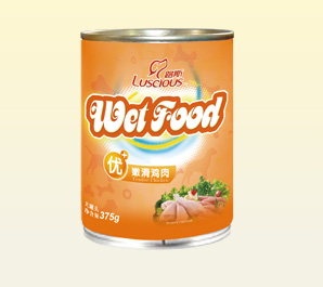 产品名称:嫩滑鸡肉 规格型号:375g 每箱数量:24罐 公司网址:www.luspet.com